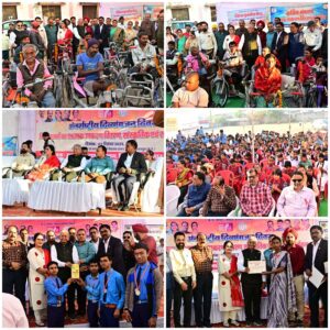 बिलासपुर :— समाज कल्याण विभाग द्वारा अंतर्राष्ट्रीय दिव्यांगजन दिवस के अवसर पर शासकीय दृष्टि एवं श्रवण बाधितार्थ विद्यालय तिफरा में आज दिव्यांगजनों के सम्मान एवं सशक्तिकरण के उद्देश्य से भव्य कार्यक्रम का आयोजन किया गया। बिल्हा विधायक श्री धरमलाल कौशिक कार्यक्रम में बतौर मुख्य अतिथि शामिल हुए। सवेरे से ही प्रतिभावान दिव्यांग बच्चों द्वारा छत्तीसगढ़ी लोक संस्कृति पर आधारित रंगारंग सांस्कृतिक प्रस्तुतियां दी गई। इन प्रस्तुतियों ने उपस्थित जनसमूह का मन मोह लिया। कार्यक्रम में महापौर श्रीमती पूजा विधानी, एडीएम श्री शिवकुमार बनर्जी, समाज कल्याण विभाग के संयुक्त संचालक श्री टीपी भावे सहित अन्य प्रशासनिक अधिकारी एवं जनप्रतिनिधि गण मौजूद रहे। कार्यक्रम में 200 से भी अधिक दिव्यांगजनों को प्रमाण पत्र एवं मैडल वितरित किये। इस अवसर पर जिला पुनर्वास केन्द्र, बिलासपुर द्वारा चिन्हांकित दिव्यांगजनों में मोटराईज्ड ट्रायसायकल 13 नग, ट्रायसायकल 11 नग, व्हीलचेयर 09 नग, बैसाखी 09 नग इस प्रकार कुल 42 दिव्यांगजनों को सहायक उपकरण अतिथियों द्वारा प्रदान किया गया।