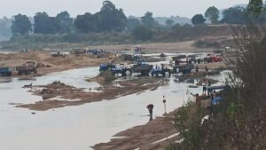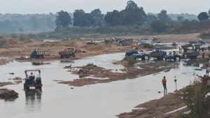 कोरबा :— थाना बांकी मोंगरा अंतर्गत सुरकछार भैरोताल एवं बलगी क्षेत्र में स्थित अहिरन नदी का सीना छलनी कर अवैध रेत उत्खनन खुलेआम किया जा रहा है। बलगी स्थित अहिरन नदी रेत घाट पर दिनदहाड़े और रात के अंधेरे में नियमों को ताक पर रखकर रेत का अवैध उत्खनन व परिवहन जोरों पर फल-फूल रहा है। प्रतिदिन सैकड़ों की संख्या में ट्रैक्टरों की कतारें नदी से रेत ढोती देखी जा रही हैं।