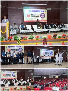 बिलासपुर :— 16 वें राष्ट्रीय मतदाता दिवस कार्यक्रम का आयोजन आज जिला प्रशासन द्वारा कोनी स्थित बैरिस्टर ठाकुर छेदीलाल कृषि महाविद्यालय के ऑडिटोरियम में किया गया। कार्यक्रम में मुख्य अतिथि के रूप में संभाग आयुक्त सुनील जैन और बिलासपुर पुलिस महानिरीक्षक राम गोपाल गर्ग मौजूद रहे। इस अवसर पर मतदाता जागरूकता की शपथ दिलाई गई और निर्वाचन कार्य ,स्वीप और एसआईआर में उत्कृष्ठ कार्य करने वाले अधिकारी कर्मचारियों को सम्मानित किया गया।