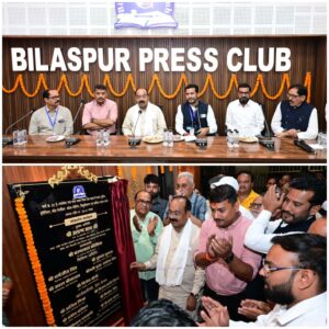 बिलासपुर // बिलासपुर के प्रेस क्लब के सुसज्जित भवन का लोकार्पण उप मुख्यमंत्री श्री अरुण साव ने किया। नगरीय प्रशासन विभाग द्वारा लगभग 31 लाख रुपये की लागत से पुराने भवन का सौंदर्यीकरण कर आधुनिक सुविधाओं से लैस किया गया है। इस अवसर पर उन्होंने पत्रकारों को नई ऊर्जा के साथ गुणवत्तापूर्ण कार्य करने की शुभकामनाएं दीं।