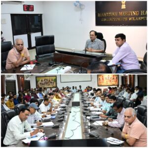 बिलासपुर :— कलेक्टर संजय अग्रवाल ने जिले में चल रहे निर्माण कार्यों की गुणवत्ता और समयबद्धता सुनिश्चित करने के लिए सभी निर्माण एजेंसियों की संयुक्त समीक्षा बैठक ली। बैठक में जिला पंचायत सीईओ संदीप अग्रवाल सहित राज्य सरकार की विभिन्न निर्माण एजेंसियों, रेलवे, एनटीपीसी और एनएचएआई के अधिकारी उपस्थित रहे। कलेक्टर ने निर्माण कार्यों में उपयोग होने वाली मिट्टी-मुरूम की अव्यवस्थित व्यवस्था पर चिंता जताते हुए इसे सुनियोजित ढंग से उपलब्ध कराने और तालाब गहरीकरण से जोड़ने की नई पहल की घोषणा की।