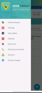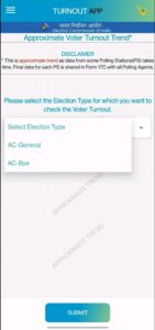 वोटर टर्नआउट एप को प्रत्येक राज्य के लिए अनुमानित वोटर टर्नआउट दिखाने के लिए डिज़ाइन किया गया है और इसका प्रयोग जिला और विधानसभा निर्वाचन क्षेत्र स्तर तक किया जा सकता है। मतदान के दिन इस पर राज्यवार, जिलेवार और विधानसभाक्षेत्रवार वोटर टर्नआउट का अपडेट देखा जा सकता है।