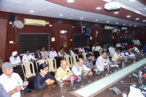 बिलासपुर // कलेक्टर एवं जिला निर्वाचन अधिकारी श्री अवनीश शरण ने मान्यता प्राप्त राजनीतिक दल के पदाधिकारियों एवं प्रत्याशियों की मंथन सभाकक्ष में बैठक लेकर विधानसभा चुनाव की मतगणना प्रक्रिया के संबंध में विस्तार से अवगत कराया। स्ट्रांग रूम खोलने से लेकर चुनाव परिणाम की घोषणा तक चुनाव आयोग के दिशा-निर्देशों की उन्हें जानकारी दी। उन्होंने पारदर्शिता एवं निष्पक्षता को ध्यान में रखते हुए मतगणना के दिन 3 तारीख को सवेरे पोस्टल बैलट का कोषालय से मतगणना स्थल तक परिवहन, स्ट्रांग रूम खोलने एवं मतगणना शुरू होने के दौरान प्रत्याशियों/अभिकर्ताओं को अनिवार्य रूप से उपस्थित रहने का आग्रह किया। पुलिस अधीक्षक श्री संतोष सिंह एवं निगम आयुक्त श्री कुणाल दुदावत भी इस अवसर पर उपस्थित थे।