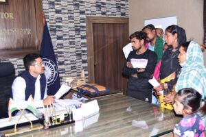 बिलासपुर // कलेक्टर श्री अवनीश शरण ने साप्ताहिक जनदर्शन में बड़ी संख्या में पहुंचे लोगों से मुलाकात कर उनकी समस्याएं सुनी। उन्होंने इत्मीनान से एक-एक फरियादी से मिलकर उनसे आवेदन लिए और इनके निराकरण के लिए संबंधित अधिकारियों को निर्देशित किया। उन्होंने जनदर्शन में पहुंची महिलाओं से चर्चा कर महतारी वंदन योजना की जानकारी दी और लाभ उठाने के लिए 20 तारीख तक आवेदन देने को कहा है। लगभग दो सौ लोग अपनी विभिन्न समस्याओं को लेकर कलेक्टर से मुलाकात की और ज्ञापन सौंपे।
