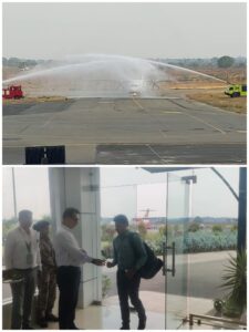 बिलासपुर // बिलासा बाई केवट एयरपोर्ट बिलासपुर के अधिकारियों ने बताया कि दिनांक 7 जून को जगदलपुर से बिलासपुर की पहली उड़ान शुरू हो गई है। इससे बिलासपुर एवं जगदलपुर के बीच पहली हवाई सेवा की शुरुआत हो गई है। बिलासपुर एवं जगदलपुर वासियों को सड़क मार्ग से आने जाने में 8 से 9 घंटे का समय लगता था। वह अब हवाई सेवा शुरू होने से एक घंटा का समय रह जाएगा। यह फ्लाइट हफ्ते में दो दिन (मंगलवार एवं शुक्रवार) चलेगी। यह फ्लाइट बिलासपुर से सीधे दिल्ली के लिए रवाना हुई। फ्लाइट के आगमन पर परंपरागत रूप से वाटर कैनन सलामी दी गई। फ्लाइट का पहला दिन एवं बुकिंग लेट खुलने के कारण जगदलपुर से बिलासपुर 04 यात्री आए एवं जगदलपुर से दिल्ली जाने वाले ट्रांजिट पैसेंजर की संख्या 22 रही। बिलासपुर एयरपोर्ट पर उतरे हुए यात्रियों का एयरपोर्ट के द्वारा पुष्प देकर स्वागत किया गया।