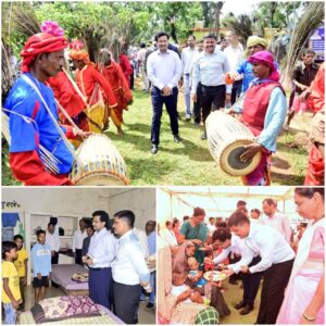 शिविर में मांदर की थाप पर बैगा और बिरहोर जनजाति ने पारंपरिक नृत्य के साथ अतिथियों का स्वागत किया। स्वागत से अभिभूत सोनमणि वोरा ने आदिवासी समाज की बहुरंगी संस्कृति और कला जीवन पर प्रकाश डाला। उन्होने बताया कि समय के साथ हमारा आदिवासी समाज विकास की गति में तेजी से आगे आया है। बोरा ने कहा कि पीएम जनमन योजना से पीव्हीटीजी महान योजना से हितग्राहियों के जीवन में तेजी से खुशाहाली आ रही है।