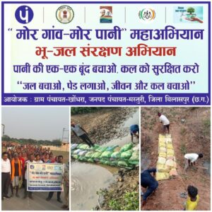 बिलासपुर // मुख्यमंत्री विष्णुदेव साय के मंशा के अनुरूप जिले के ग्राम पंचायतों में मोर गांव-मोर पानी महाअभियान प्रारंभ कर दिया गया है। कलेक्टर श्री संजय अग्रवाल के निर्देश पर जिले में भू-जल स्तर को बढ़ाये जाने के लिए ग्रामीणजनों के व्यापक प्रचार-प्रसार हेतु जल जागरूकता संगोष्ठियों का आयोजन, जल जागरूकता रैली, महात्मा गांधी नरेगा के कार्यस्थलों पर जागरूकता कार्यक्रमों का आयोजन एवं दिवाल लेखन तथा पोस्टर-बैनर के माध्यम से भविष्य के भू-जल संकट तथा भू-जल के कम से कम दोहन एवं फसल चक्र की जानकारी दी जा रही है। साथ ही सभी सार्वजनिक स्थलों पर भू-जल संरक्षण संकल्प ग्रामीणजनों के बीच लिये जा रहे है। गौरतलब है कि विकासखण्ड बिल्हा एवं तखतपुर जल स्तर की सेमीक्रिटीकल श्रेणी में शामिल है। विशेष अभियान चलाकर इन विकासखण्डों में भू-जल संरक्षण के कार्यक्रम चलाये जा रहे है।