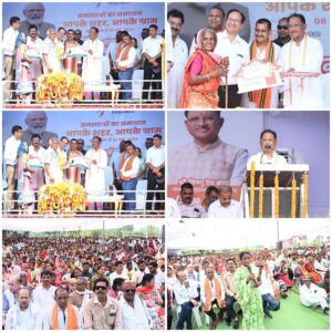 बिलासपुर // सुशासन तिहार के अंतर्गत मुख्यमंत्री विष्णु देव साय का उड़न खटोला बिलासपुर जिले के कोटा ब्लॉक अंतर्गत ग्राम आमागोहन में उतरा। वनांचल के आदिवासी ग्राम में मुख्यमंत्री साय को अपने बीच पाकर ग्रामीणों में उत्साह और खुशी का माहौल था। वे चिलचिलाती धूप की परवाह किए बगैर अपने राज्य के मुखिया को एक झलक देखने और उन्हें सुनने के लिए घण्टो डटे रहे। मुख्यमंत्री श्री साय ने समाधान शिविर में जहाँ ग्रामीणों से संवाद किया वहीं मुख्यमंत्री ने समाधान पेटी में डाले गए आवेदनों की निराकरण की स्थिति भी जानी। उन्होंने सुशासन तिहार की सार्थकता को बताते हुए कहा कि सुशासन तिहार के माध्यम से छत्तीसगढ़ की सरकार आपके गाँव में आई है। हमने बीते डेढ़ वर्षों में राज्य के लोगों के हित में कार्य किया है। जो सरकार अच्छा काम करती है उनकी ही हिम्मत होती है जनता के बीच जाने की। सुशासन तिहार एक तरह से हमारा रिपोर्ट कार्ड भी है और हमारी सरकार के द्वारा किए गए कार्यों का आंकलन करने का अवसर भी। इसके माध्यम से सरकार योजनाओं का धरातल पर क्रियान्वयन की स्थिति भी जान रही है।