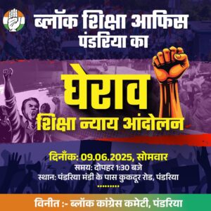 इसी परिप्रेक्ष्य में प्रदेश कांग्रेस कमेटी के निर्देश पर पंडरिया ब्लॉक कांग्रेस कमेटी के द्वारा दिनांक 9 जून दिन सोमवार को पंडारिया ब्लॉक मुख्यालय में अपराह्न 1.30 बजे धरना और घेराव कार्यक्रम ब्लॉक कांग्रेस अध्यक्ष श्री नवीन जायसवाल के नेतृत्व में होना हैं,ब्लॉक कांग्रेस कमेटी के अध्यक्ष के आमंत्रण पर इस कार्यक्रम में शामिल होने पंडरिया विधानसभा क्षेत्र के वरिष्ठ कांग्रेस नेता और पंडरिया जनपद पंचायत के पूर्व अध्यक्ष तथा वर्तमान में कुंडा ब्लॉक कांग्रेस से प्रदेश कांग्रेस नेता श्री अर्जुन तिवारी पंडरिया जाएँगे ।धरना और घेराव कार्यक्रम के बाद श्री तिवारी पंडरिया रेस्ट हाउस में कांग्रेस जनों से भेंट मुलाकात करेंगे।