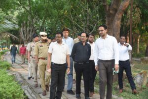 बिलासपुर :— जिले के प्रवास पर पहुंचे अपर मुख्य सचिव जेल, गृह विभाग एवं जिले के प्रभारी सचिव श्री मनोज पिंगुआ ने अधिकारियों की बैठक के बाद शहर का दौरा कर विकास कार्याें का निरीक्षण किया। उन्होंने प्रमुख रूप से शहर की ट्रैफ़िक व्यवस्था को सुगम बनाने के लिए किये जा रहे कार्याें का अवलोकन किया। कलेक्टर संजय अग्रवाल एवं एसएसपी रजनेश सिंह भी साथ थे। श्री पिंगुआ ने इस अवसर पर सबसे पहले अरपा किनारे बनाए जा रहे स्मार्ट रोड का निरीक्षण किया। उन्होंने यह कार्य पूरी गुणवत्ता से जल्द पूर्ण करने कहा। इसके बाद उन्होंने जल संसाधन विभाग की निर्माणाधीन परियोजनाओं पचरीघाट एवं शिवघाट का जायजा लेकर निर्माण के संबंध में आवश्यक निर्देश दिए। इसके बाद उन्होंने आगे कोनी पहंुचकर बिलासा ताल के सौंदर्यीकरण कार्य का भी निरीक्षण किया। यहां उन्होंने तालाब गहरीकरण, पाथ वे का काम और रंगरोगन जैसे कार्यों को जल्द पूर्ण करने के निर्देश दिए। उन्होंने कहा कि यहां लोगों के मनोरंजन और समय गुजारने का एक बढ़िया केंद्र विकसित हो रहा है। उन्होंने डीएफओ श्री नीरज यादव को एक पेड़ मां के नाम अभियान पर वृक्षारोपण कराने के निर्देश दिए। नगर निगम आयुक्त श्री अमित कुमार ने शहर की ट्रैफ़िक व्यवस्था को दुरूस्त करने वैकल्पिक मार्गाें और प्लान की जानकारी दी। इस अवसर पर सीईओ जिला पंचायत श्री संदीप अग्रवाल भी मौजूद थे।