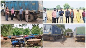 कोटा अनु विभाग के अंतर्गत 21 ट्रैक्टर एक जेसीबी एक पोकलैंड एवं ग्राम बड़े बरन में 20 ट्रैक्टर अवैध रूप से रेतडंपिंग करना पाया गया । सभी अवैध परिवहन कर रहे वाहनों को थाना प्रभारी के सुपुर्द किया गया है ।डंपिंग किए गए रेत को संबंधित ग्राम पंचायत को सौंपा गया है। बिल्हा के अंतर्गत ग्राम मोहदा में अवैध रूप से रेत परिवहन करते हुए दो ट्रैक्टर जप्त किया गया एवं इस हिर्री थाने में खड़ा किया गया । साथ ही निषाद ट्रेडर्स द्वारा 60 ट्रैक्टर रेत डंप किया गया था जिसे जप्त किया गया। ग्राम अटर्रा में विभिन्न स्थानों पर अवैध रूप से लगभग ₹450 ट्रैक्टर रेत का भंडारण किया गया था जिसे भी पुलिस एवं राजस्व विभाग की टीम द्वारा जप्त किया गया। बोदरी में राजस्व एवं पुलिस टीम हिर्री माइंस के पास अवैध रेत परिवहन करते हुए एक ट्रैक्टर जप्त किया तथा पीरेया में अवैध परिवहन करते हुए तीन ट्रैक्टर को पकड़ा गया।