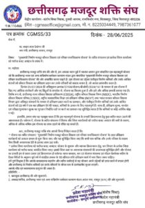 बिलासपुर :- छत्तीसगढ़ मजदूर शक्ति संघ के प्रदेश अध्यक्ष रवि गढ़वाल के निर्देश पर, प्रदेश महामंत्री संतोष मिश्रा ने श्रम मंत्री लखन लाल देवांगन से “मुख्यमंत्री निर्माण मजदूर कौशल विकास एवं परिवार सशक्तिकरण योजना” के त्वरित संचालन और प्रत्येक जिला कार्यालय को पर्याप्त बजट आवंटन की पुरजोर मांग की है। यह मांग एक संलग्न पत्र (क्रमांक CG MSS/33) के माध्यम से की गई है, जिसकी तिथि 28 जून 2025 है।