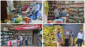 मेसर्स मेसर्स अमृत कृषि केन्द्र सीपत में मूल्य – स्टाॅक सूची प्रदर्शित नहीं एवं निर्धारित प्रारूप में स्कंध एवं बिल बुक नहीं पाये जाने पर नोटिस जारी किया गया । मेसर्स अग्रवाल खाद भण्डार मल्हार को मूल्य, स्टाॅक सूची प्रदर्शित नहीं एवं निर्धारित प्रारूप में स्कंध एवं बिल बुक नहीं पाये जाने तथा उर्वरक अनुज्ञप्ति में समावेश कराये कम्पनियों के उर्वरकों के अतिरिक्त अन्य कम्पनी के उर्वरकों का भण्डारण किये जाने के कारण नोटिस जारी कर जवाब मांगा गया है । मेसर्स गुप्ता खाद भण्डार मल्हार को बिल बुक निर्धारित प्रारूप में संधारण करने हेतु चेतवानी दी गई । मेसर्स गणेश खाद भण्डार मल्हार को अनुज्ञप्ति में फार्म ओ समावेश कराने, निर्धारित फार्मेट में बिल एवं स्कंध संधारण नहीं किये जाने के कारण करने नोटिश जारी किया गया । इसी प्रकार मेसर्स कैवर्त कृषि केन्द्र मल्हार को कीटनाशक एवं बीज अनुज्ञप्ति में बिना प्रिसिंपल सर्टिफिकेट समावेश के कीटनाशक औषधियों पर विक्रय करने, क्रेताओं को निर्धारित फार्मेट में बिल नहीं दिये जाने, स्कंध पंजी का संधारण नहीं किये जाने पर जवाब तलब किया गया है। जिला स्तरीय निरीक्षण दल में श्री अनिल कुमार शुक्ला सहायक संचालक कृषि, श्री उमेश कश्यप ग्रा.कृ.वि.अ., श्री विजय धीरज ग्रा.कृ.वि.अ., कार्यालयीन एवं विकासखण्ड मस्तूरी से श्री ए.के.आहिरे प्र.व.कृ.वि.अ., एवं श्रीमती अनामिका वर्मा कृ.वि.अ.उर्वरक निरीक्षक उपस्थित थे।