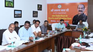 बिलासपुर :— उप मुख्यमंत्री तथा लोक निर्माण मंत्री अरुण साव ने लोक निर्माण विभाग के कार्यों की समीक्षा की। उन्होंने नवा रायपुर स्थित निर्माण भवन में वीडियो कॉन्फ्रेसिंग के माध्यम से आयोजित बैठक में वरिष्ठ विभागीय अधिकारियों के साथ बरसात में सड़कों और पुल-पुलियों की स्थिति तथा उनकी मरम्मत के लिए किए जा रहे कार्यों समीक्षा की और आवश्यक निर्देश दिए। उन्होंने परफॉर्मेंस गारंटी के तहत सड़कों की मरम्मत की भी जानकारी ली। बैठक में वर्षा ऋतु में अतिवृष्टि से मार्गों को अवरुद्ध होने से बचाने तथा अप्रिय घटनाओं को रोकने निगरानी एवं आवश्यक उपायों की कार्ययोजना पर भी चर्चा की गई। उप मुख्यमंत्री श्री साव के साथ लोक निर्माण विभाग के सचिव डॉ. कमलप्रीत सिंह, प्रमुख अभियंता श्री वी.के. भतपहरी, संयुक्त सचिव श्री एस.एन. श्रीवास्तव और सभी मुख्य अभियंता भी निर्माण भवन से बैठक में शामिल हुए। सभी संभागों और जिलों से अधीक्षण अभियंता तथा कार्यपालन अभियंता बैठक में वर्चुअली शामिल हुए।