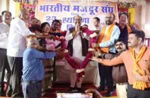 उप मुख्यमंत्री श्री अरुण साव ने भारतीय मजदूर संघ के स्थापना दिवस कार्यक्रम को संबोधित करते हुए कहा कि आज हम सब भारतीय मजदूर संघ का 70वां स्वर्णिम स्थापना दिवस मना रहे हैं। उन्होंने संघ के पदाधिकारियों को बधाई देते हुए कहा कि मजदूर भाईयों ने विगत 70 सालों से भारतीय मजदूर संघ के साथ ही देश को रचनात्मक दिशा देने का कार्य किया है। भारतीय मजदूर संघ दुनिया का सबसे बड़ा संघ है। इसने देश को आत्मनिर्भर बनाने में सरकार और मजदूरों के मध्य सेतु का कार्य किया है। श्री साव ने कहा कि मोदी सरकार समाज के सभी वर्गों के हित में कार्य कर रही है। मुख्यमंत्री श्री विष्णु देव साय के नेतृत्व में राज्य सरकार भी इस दिशा में काम कर रही है। श्रमिकों का कल्याण सर्वोच्च प्राथमिकता में है। उन्होंने संघ की मांग पर भवन के लिए पदाधिकारियों से जमीन की व्यवस्था करने का आग्रह किया। उन्होंने भवन के निर्माण के लिए हरसम्भव सहयोग का भरोसा दिलाया।