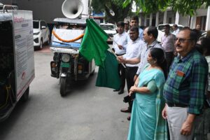 बिलासपुर // विश्व हेपेटाइटिस दिवस के अवसर पर आज जिला कार्यालय परिसर से कलेक्टर श्री संजय अग्रवाल एवं नगर निगम आयुक्त श्री अमित कुमार ने दो जागरूकता रथों को हरी झंडी दिखाकर रवाना किया। दोनों रथों को शहर के अलग-अलग मार्गों एवं स्थानों जैसे कि नेहरु चौक, जिला चिकित्सालय, सिम्स, शहरी प्राथमिक स्वास्थ्य केन्द्र गांधी चौक, राजकिशोर नगर, बंधवापारा एवं शहर के प्रमुख मार्गाे में भ्रमण कराया गया। प्रचार-प्रसार रथ में जन जागरुकता हेतु फ्लैक्स लगाए गए है तथा ऑडियो मैसेज चला कर लोगों को जागरुक किया गया। इस अवसर पर मुख्य चिकित्सा एवं स्वास्थ्य अधिकारी डॉ. शुभा गढ़ेवाल, जिला स्वास्थ्य अधिकारी, जिला नोडल अधिकारी, हेपेटाइटिस नियंत्रण कार्यक्रम एवं डिस्ट्रिक्ट मैनेजर डाटा, आईडीएसपी उपस्थित थे।