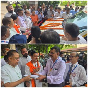 बिलासपुर :— केंद्रीय शहरी विकास राज्यमंत्री तोखन साहू की उपस्थिति में शहर विधायक अमर अग्रवाल जी के द्वारा विधायक निधि से 12 लाख 57 हजार की लागत से छत्तीसगढ़ आयुर्विज्ञान संस्थान (सिम्स) को मल्टी यूटिलिटी वाहन प्राप्त हुआ है। इस वाहन की चाबी विधायक अमर अग्रवाल जी ने सिम्स के अधिष्ठाता डॉ. रमणेश मूर्ति को सौंपी। इस अवसर पर चिकित्सा अधीक्षक डॉ. लखन सिंह, डॉ. भूपेंद्र कश्यप, डॉ. ए. आर. बेन, डॉ. अमित ठाकुर, डॉ मधुमिता मूर्ति डॉ सुपर्णा गांगुली डॉ संगीता रमन जोगी डॉ. समीर पैकरा सहित सिम्स के अनेक अधिकारी एवं कर्मचारी उपस्थित रहे।