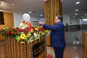 बिलासपुर :— छत्तीसगढ़ उच्च न्यायालय में भारत के राष्ट्रपिता महात्मा गांधी जी की 156 वीं जयंती श्रद्धा और भावनापूर्वक मनाई गई। इस अवसर पर माननीय श्री मुख्य न्यायमूर्ति रमेश सिन्हा के कुशल मार्गदर्शन में छत्तीसगढ़ उच्च न्यायालय परिसर में स्थापित महात्मा गांधी जी की प्रतिमा पर छत्तीसगढ उच्च न्यायालय के न्यायाधीश माननीय श्री न्यायमूर्ति नरेश कुमार चंद्रवंशी द्वारा माल्यार्पण एवं पुष्प अर्पित कर उन्हें नमन किया।