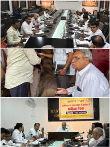 बिलासपुर // राज्य खाद्य आयोग के अध्यक्ष संदीप शर्मा एवं सदस्य ज्योति कश्यप, राजेन्द्र महिलांगे तथा सचिव राजीव जायसवाल के द्वारा बिलासपुर जिले के दौरे पर रहे। अध्यक्ष शर्मा ने भ्रमण के बाद जिला पंचायत सीईओ संदीप अग्रवाल की उपस्थिति में जिला कार्यालय के मंथन सभा कक्ष में खाद्य विभाग, स्कूल शिक्षा विभाग, आदिवासी विकास विभाग, महिला एवं बाल विकास विभाग, नागरिक आपूर्ति निगम के आयोग से सम्बंधित कार्यों की समीक्षा की गई। उन्होंने समीक्षा बैठक में राज्य खाद्य आयोग का शिकायत कॉल सेन्टर नम्बर 18002333663 एवं 1967 का उचित मूल्य दुकानों, मध्यान्ह भोजन संचालित स्कूलों, छात्रावासों, आगंनबाड़ी केन्द्रों में प्रदर्शित कराने के निर्देश दिये गये। साथ ही फोर्टिफाईड चावल के लाभ एवं उपयोग की जानकारी के व्यापाक प्रचार-प्रसार करने एवं इस बारे में प्रामाणिक जानकारी चस्पा कराने के निर्देश दिये गये।