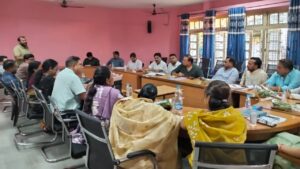 सीएमएचओ कार्यालय में हुई बैठक में जिले के सभी विकासखंड के सभी ग्राम पंचायतों को टीबी मुक्त बनाए जाने का लक्ष्य रखा गया जिसके लिए जनप्रतिनिधियों से सहयोग की अपील मुख्य चिकित्सा एवं स्वास्थ्य अधिकारी डॉ. शुभा गरेवाल ने की। बैठक में ग्राम स्तर पर जागरूकता बढ़ाने, निक्षय मित्र बनकर टीबी मरीजों की सहायता करने तथा जनभागीदारी को सशक्त बनाने पर विशेष बल दिया गया। जनप्रतिनिधियों ने टीबी उन्मूलन अभियान में सक्रिय भागीदारी और ग्रामीण क्षेत्रों के टीबी मरीजों के ‘निक्षय मित्र’ बनने का संकल्प लिया।इस अवसर पर डॉ. गायत्री बांधी नोडल अधिकारी टीबी नियंत्रण कार्यक्रम, अन्य स्वास्थ्य कार्यक्रमों के नोडल अधिकारी, डीपीएम पियूली मजूमदार एवं टीबी सलाहकार आशीष सिंह सहित स्वास्थ्य विभाग के अधिकारी उपस्थित रहे।