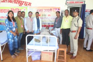 बिलासपुर // केन्द्रीय जेल में छत्तीसगढ़ में 3 अक्टूबर से 10 अक्टूबर 2025 तक छत्तीसगढ़ राज्य निर्माण की रजत जयंती के अवसर पर प्रतिदिन जेल सुधारात्मक कार्यक्रम का आयोजन किया जा रहा है। इसी क्रम में केन्द्रीय जेल में रक्तदान शिविर का आयोजन किया गया, जिसमें सिम्स अस्पताल से ब्लड सेंटर स्टाफ से डॉ मनोज क्षत्रिय, डॉ असीम आनंद मसीह, श्री विवेक कुमार शर्मा, श्री किशोर सिदार, श्री सुमन गिरी, श्रीमती कौशल्या पात्रे, श्रीमती आँचल शास्त्री, श्री अजय कुमार, श्री आनंद अग्निहोत्री, श्री सुरेश वर्मा, एवं रेडक्रास सोसायटी बिलासपुर से श्री सौरभ सक्सेना, श्री सुशील राजपूत, अन्नू पटेल, लेमा देवांगन, आरती गुप्ता उपस्थित हुए। जेल स्टाफ ने काफी उत्साह के साथ रक्तदान शिविर में शामिल होकर रक्तदान किया गया। इसके अलावा बंदी भाइयों के द्वारा शहीदों के नाम कार्यक्रम में देशभक्ति गीतों के साथ कार्यक्रम आयोजित किया गया। कार्यक्रम में श्री खोमेश मंडावी जेल अधीक्षक, श्रीमती कोकिला वर्मा, प्रभारी उप जेल अधीक्षक, श्री रामपाल सिंह कंवर, परिवीक्षा एवं कल्याण अधिकारी तथा अधिकारी, कर्मचारी उपस्थित रहे।