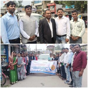 AISECT-VIIT बस स्टैंड बाँकी मोंगरा में हुआ। इस अवसर पर कॉलेज परिवार एवं विद्यार्थियों द्वारा यात्रा का जोशपूर्ण स्वागत किया गया। पूरे परिसर में उल्लास और गर्व का माहौल रहा।इस यात्रा का मुख्य उद्देश्य देशभर के विद्यार्थियों और युवाओं को कौशल विकास, नई तकनीकों और रोजगारपरक शिक्षा के प्रति जागरूक करना है।