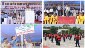 बिलासपुर // 25वीं राज्य स्तरीय शालेय क्रीडा प्रतियोगिता का भव्य शुभारंभ पुलिस ग्राउंड मैदान में किया गया। कार्यक्रम का विधिवत शुभारंभ जिला पंचायत अध्यक्ष श्री राजेश सूर्यवंशी ने किया। 15 अक्टूबर से 18 अक्टूबर तक होने वाले इस प्रतियोगिता में प्रदेश भर से 14 से 19 वर्ष के बालक-बालिका भाग लेंगे। कबड्डी में 14, 17 वर्ष बालक-बालिका, बेसबॉल में 14,17 एवं 19 वर्ष बालक-बालिका, कराते में 14, 17 एवं 19 वर्ष के बालक-बालिका सहित प्रदेश के 5 संभाग से लगभग 1060 खिलाड़ी एवं लगभग 100 कोच प्रशिक्षक भाग लेंगे।