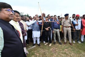 बिलासपुर // उप मुख्यमंत्री तथा खेल एवं युवा कल्याण मंत्री अरुण साव ने बस्तर ओलंपिक-2025 के विकासखण्ड स्तरीय खेल प्रतियोगिताओं का शुभारंभ किया। उन्होंने कांकेर के गोविंदपुर खेल मैदान में खेल ध्वज फहराया और वहां मौजूद खिलाड़ियों के बीच जाकर उनका उत्साहवर्धन किया। श्री साव ने तीरंदाजी, व्हालीबॉल और रिले रेस में सांकेतिक तौर पर हिस्सा लेकर प्रतिभागी खिलाड़ियों को अपनी शुभकामनाएं दीं। उन्होंने गोविंदपुर के खेल मैदान में शेड निर्माण के लिए 25 लाख रुपए देने की घोषणा की। विधायक श्री आशाराम नेताम, छत्तीसगढ़ मछुआ कल्याण बोर्ड के अध्यक्ष श्री भरत मटियारा और हस्तशिल्प बोर्ड की अध्यक्ष श्रीमती शालिनी राजपूत भी शुभारंभ कार्यक्रम में शामिल हुए।