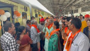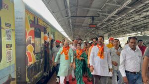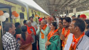 बिलासपुर :— रामलला दर्शन योजना के तहत भारत गौरव ट्रेन बिलासपुर संभाग के 850 श्रद्धालु को लेकर अयोध्या धाम के लिए रवाना हुई। इस विशेष ट्रेन को बिल्हा विधायक श्री धरमलाल कौशिक ने हरी झण्डी दिखाकर रवाना किया। इस अवसर पर महापौर श्रीमती पूजा विधानी, जिला पंचायत अध्यक्ष श्री राजेश सूर्यवंशी, अन्य जनप्रतिनिधि, जिला प्रशासन, छत्तीसगढ़ टूरिज्म बोर्ड के अधिकारी-कर्मचारी एवं रेलवे के कर्मचारी उपस्थित थे।